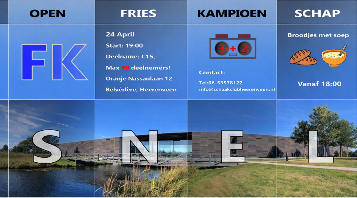 info deelnemers uitslagen Reglement Voornaam* Achternaam* Telefoon Email* KNSB blitz rating Bondsnummer* (zie ratingviewer.nl) Schaakclub Privacy* Ja Ik ga akkoord met privacystatement Betalen* ja Ik heb €15,- over gemaakt op:NL53RABO0183683927 Captcha* 10 × 3 = ?