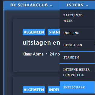 Na het succes van het afgelopen Sinterklaas snelschaakavond heb ik in het menu INTERN onderaan een link gemaakt zodat we hier alle snelschaak uitslagen kunnen terugzien.