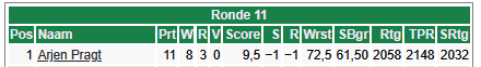 Winnaar dit jaar: Arjen Pragt met 9,5 uit 11 2e Tjeerd Siblesz 9 uit 11 3e Ferdi van Bavel 8.5 uit 11